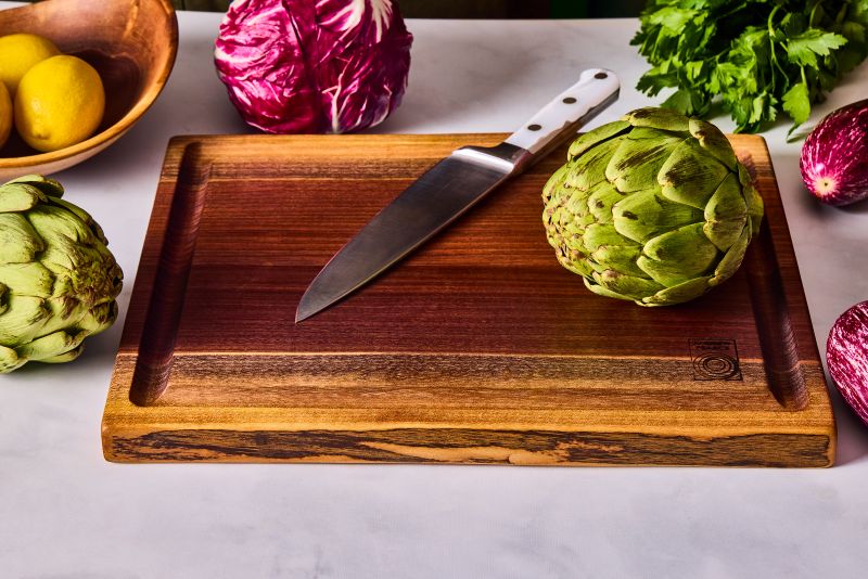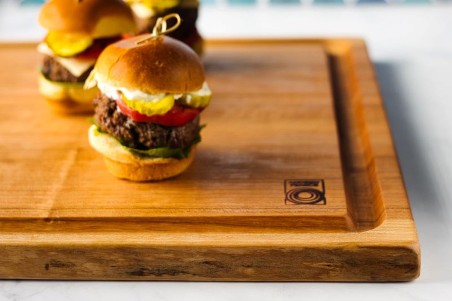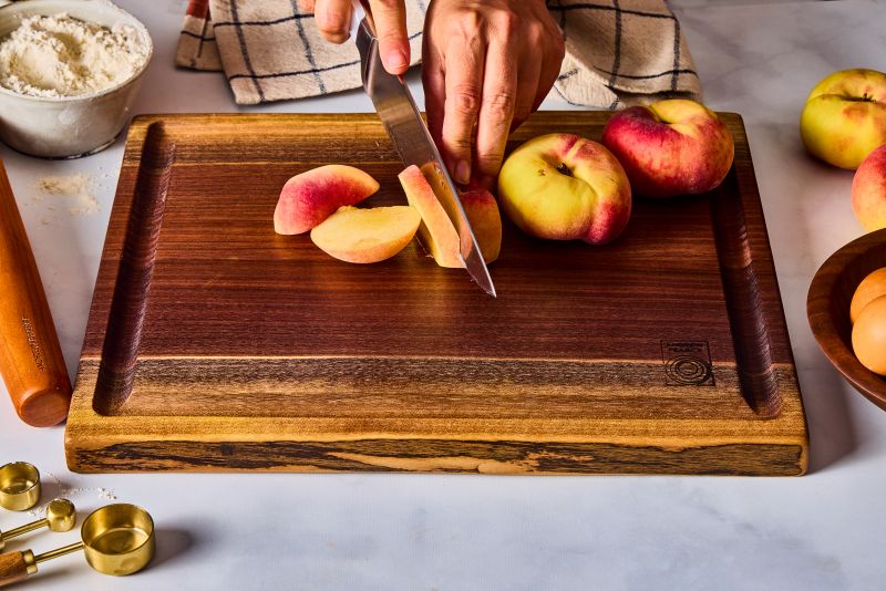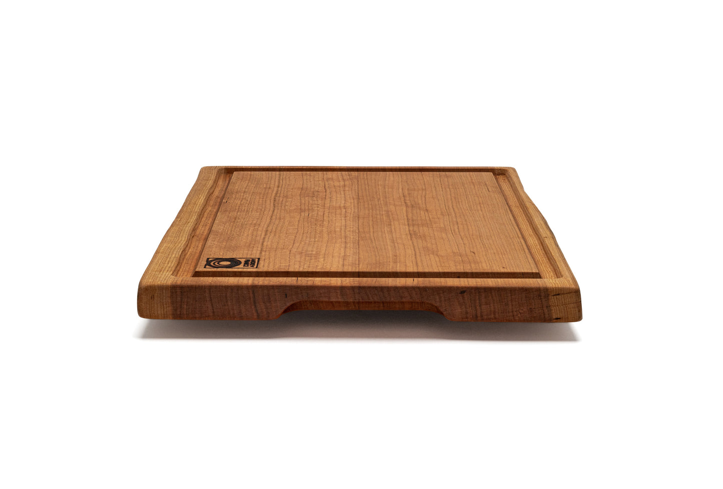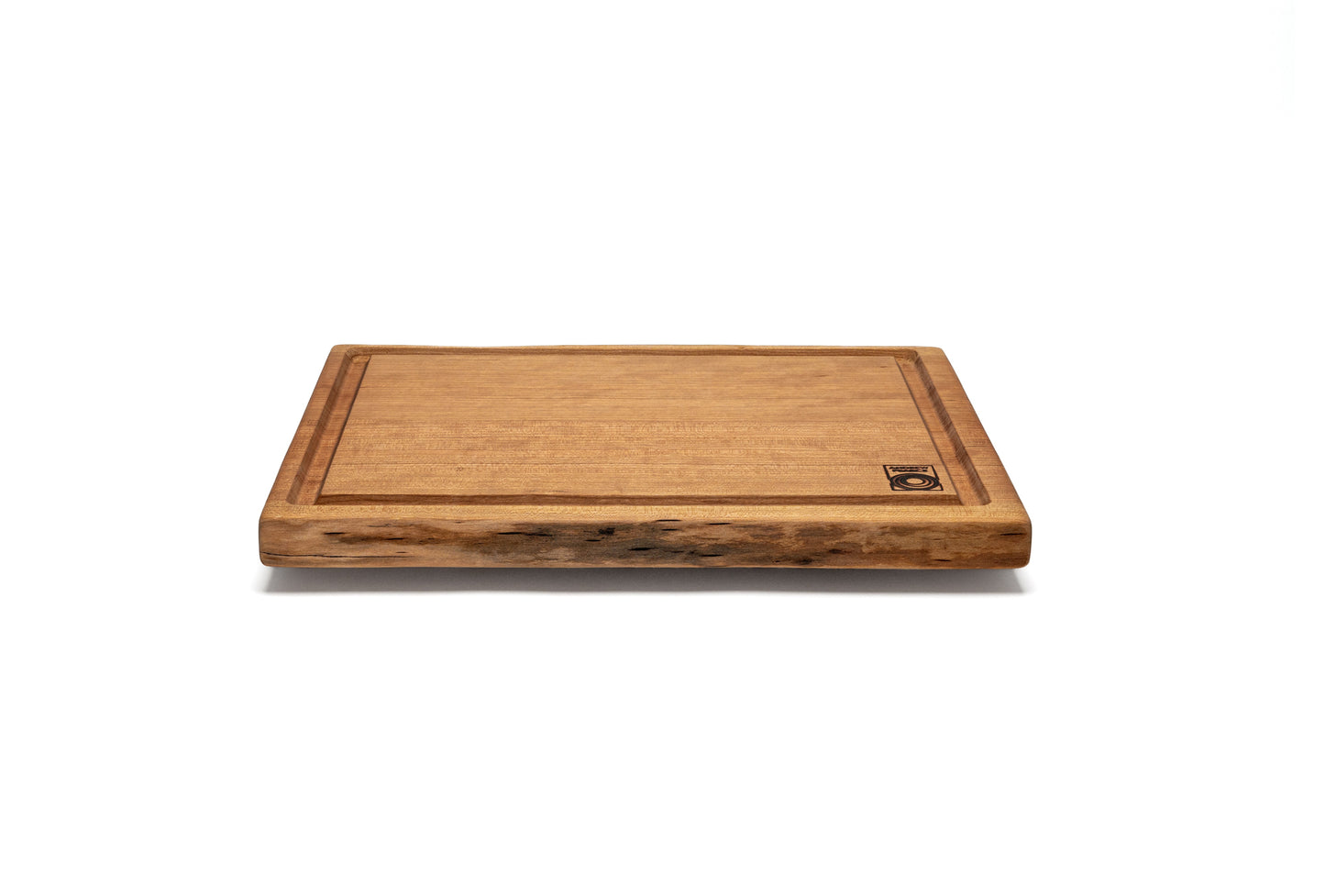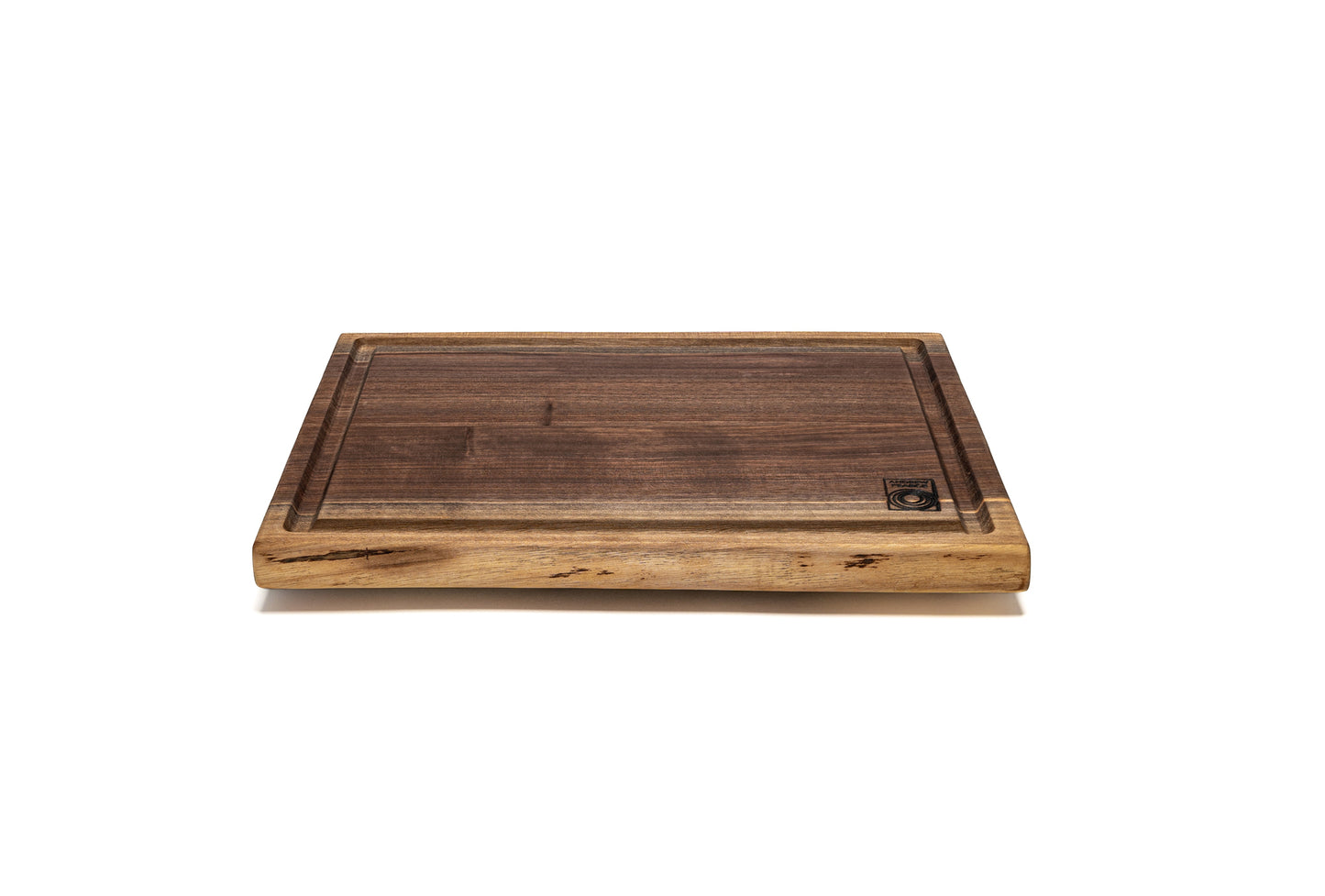 When things get juicy, you need a wood carving board with a groove to capture those drippings. Our medium live edge wood carving board offers the generous space you need for your favorite grilled meals, has a smoothly carved juice groove around the perimeter, and provides you with side handles to make carrying this board a breeze. Finished with our food-safe, allergen-free Walnut Wood Oil, you can carve right at the table and have confidence knowing that this board will prevent any mess.