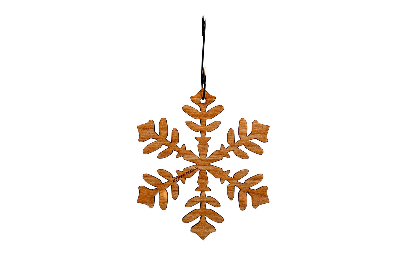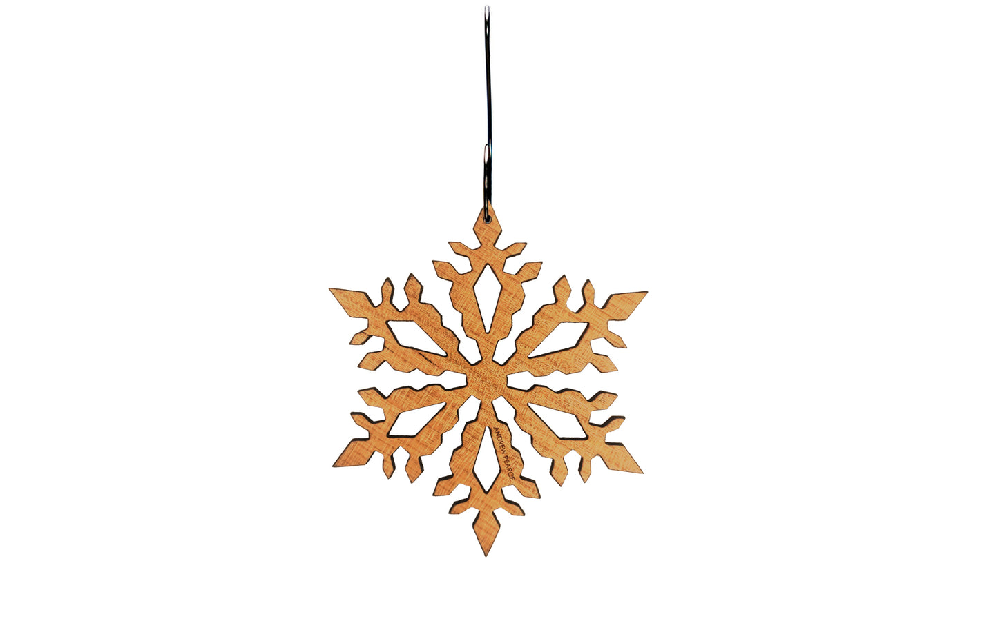 Similar to real snowflakes, each cherry wood ornament varies in natural appearance. All ornaments come with a spiral steel hook for hanging decor. We also love to use these delightful snowflakes as coasters, DIY napkin ring holders, and decorative toppers for gifts.